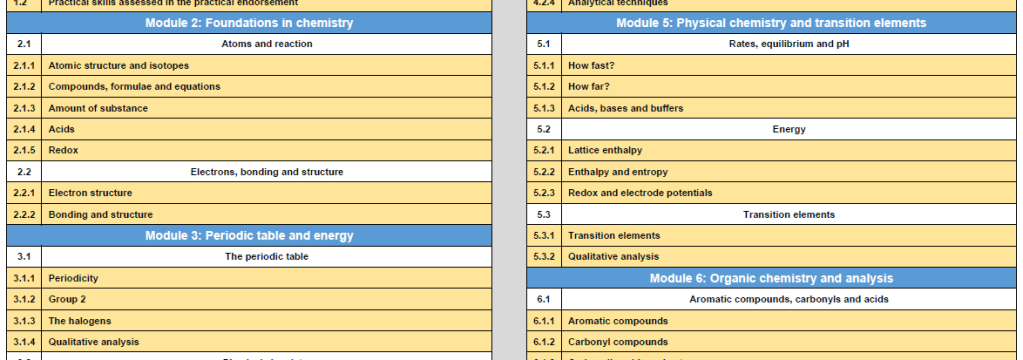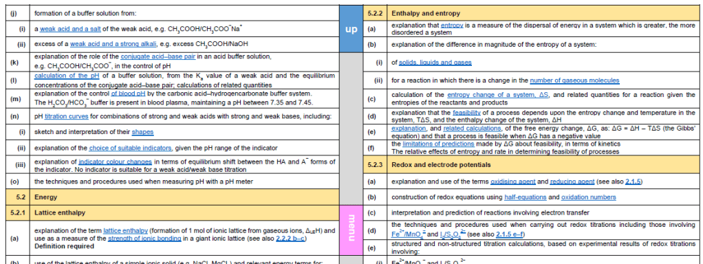 This is part of the whole A level syllabus on one landscape page: